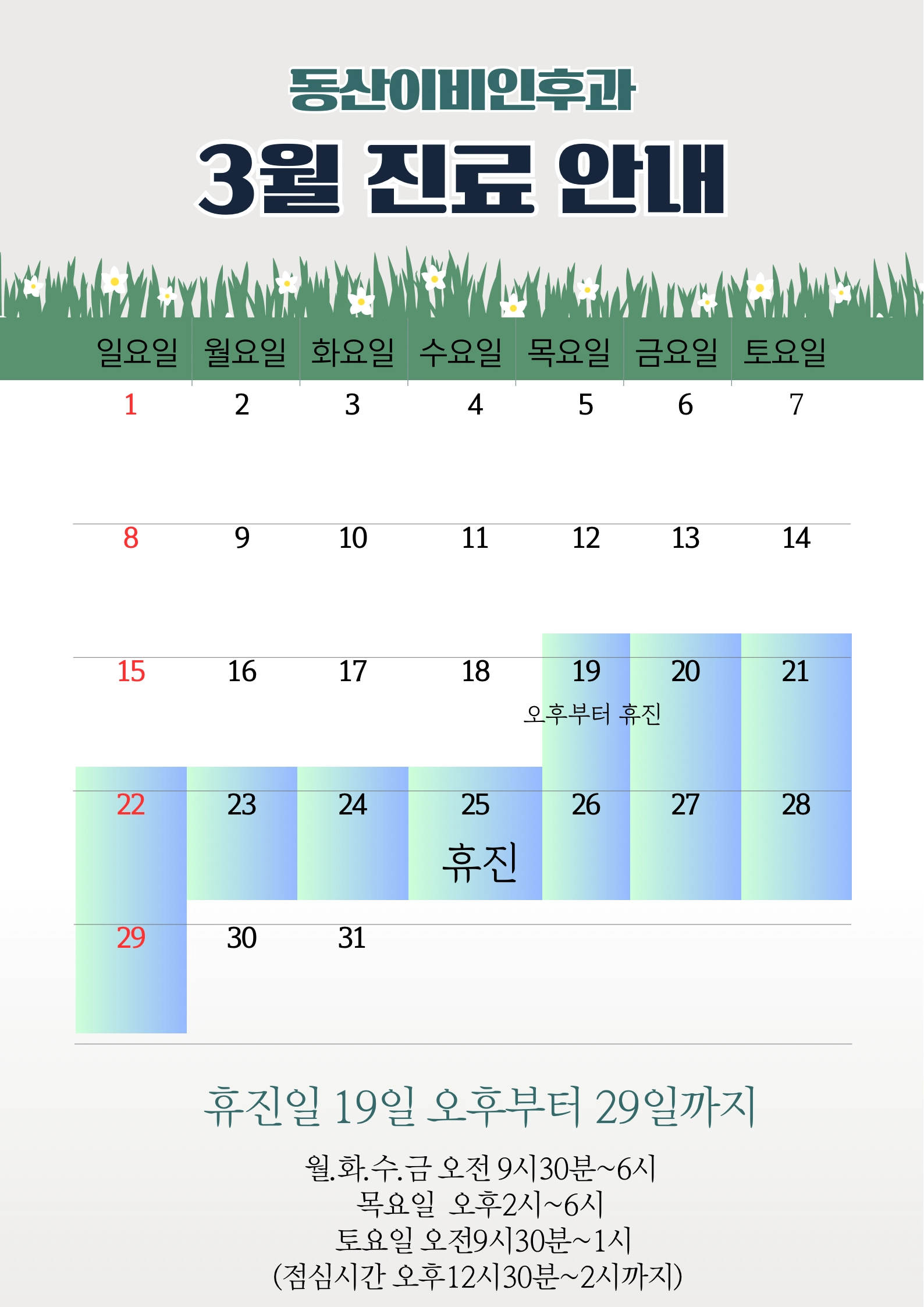 3월 진료시간 안내