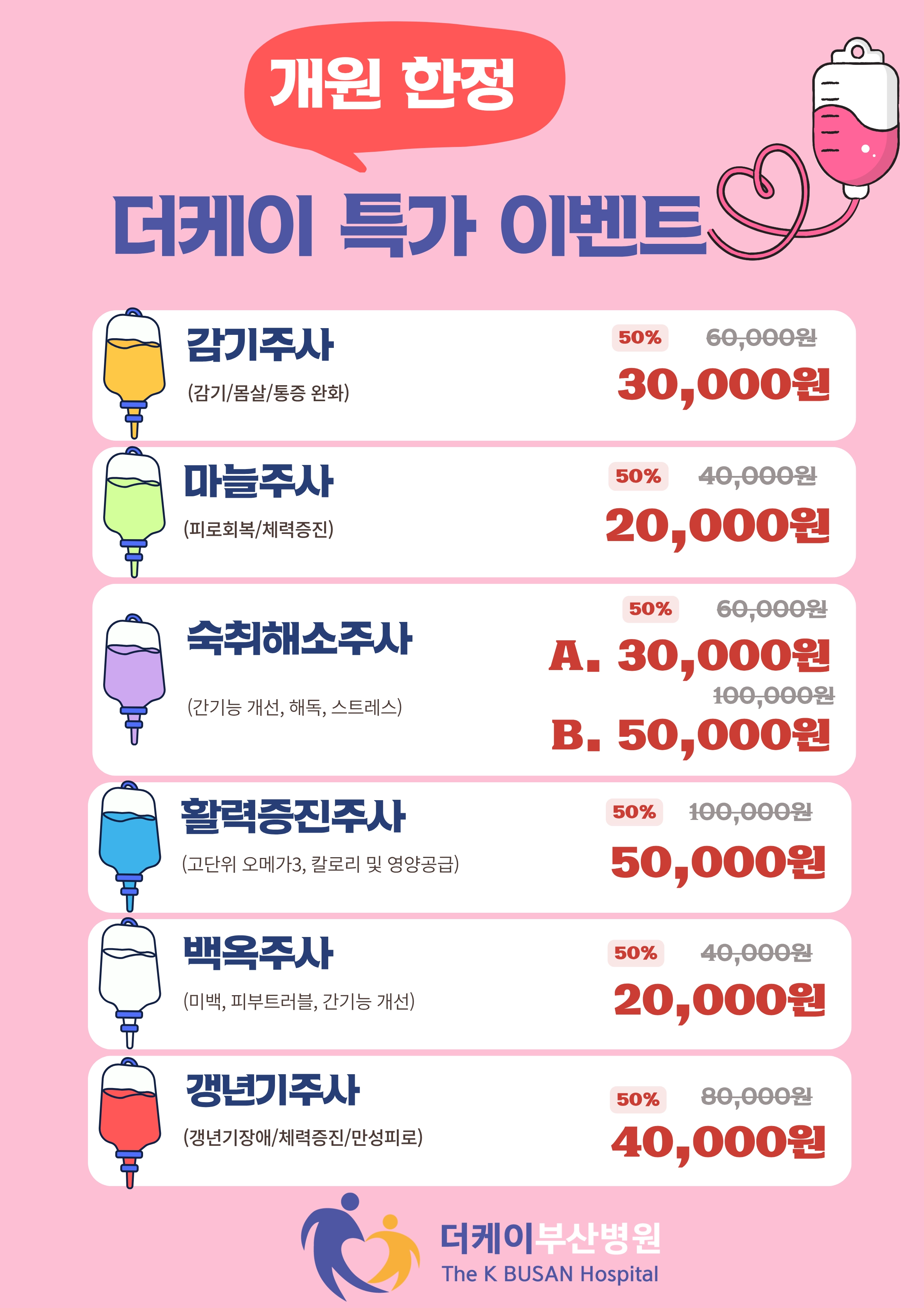 개원한정 영양주사 특가 이벤트 합니다. 문의는 2층 원무과로 해주세요 ^^